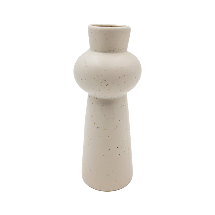 Florero estilo boho chic, elaborado con diseño artesanal y detalles que combinan texturas y tonos naturales. Ideal para realzar arreglos florales y aportar un toque cálido, elegante y relajado a la decoración.