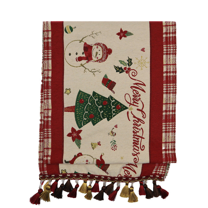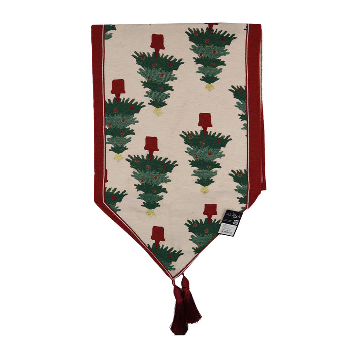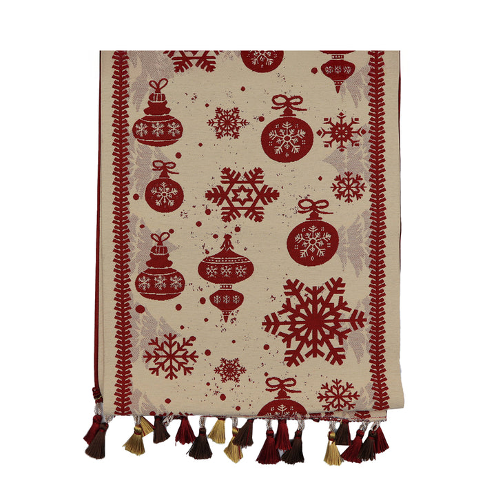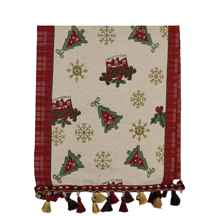 Camino de mesa navideño que aporta elegancia y un toque festivo a tu decoración de fin de año.