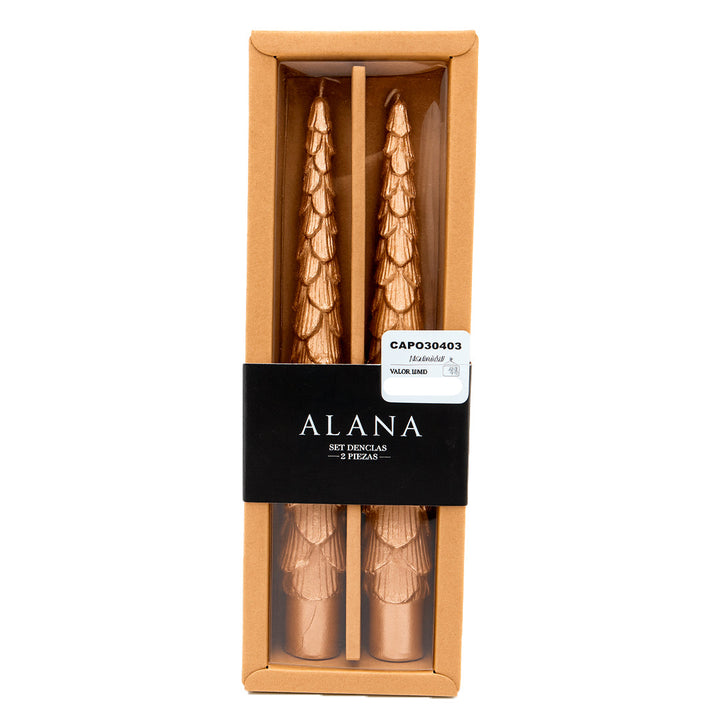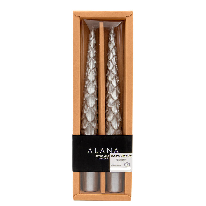 Set x 2 velas navideñas con diseño de árbol, elegantes y festivas, perfectas para iluminar y decorar tus espacios en esta temporada.