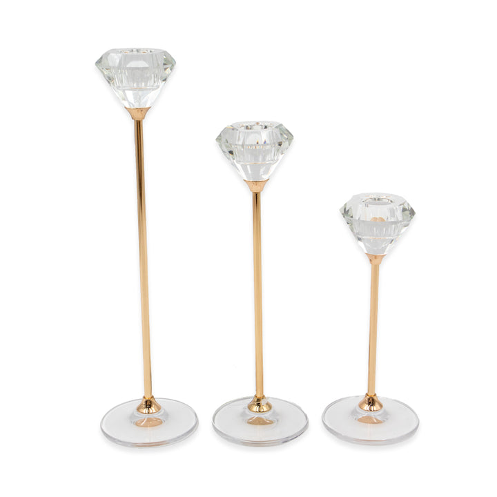 Un accesorio elegante y versátil para iluminar y decorar tus espacios. Este set incluye tres candelabros en vidrio, perfectos para crear ambientes acogedores en tu sala, comedor, habitación o eventos especiales.