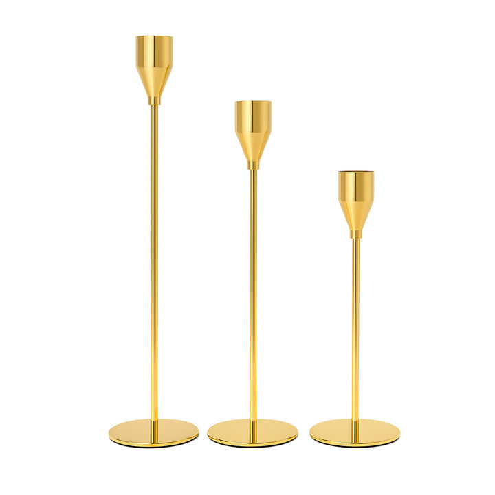 Elegancia y modernidad para tus espacios. Este set de tres candelabros en metal con diferentes alturas es ideal para ambientar tu sala, comedor o eventos especiales. Su diseño estilizado y contemporáneo aporta un toque sofisticado y versátil que se adapta a distintos estilos de decoración.
