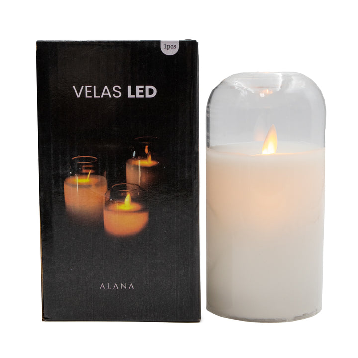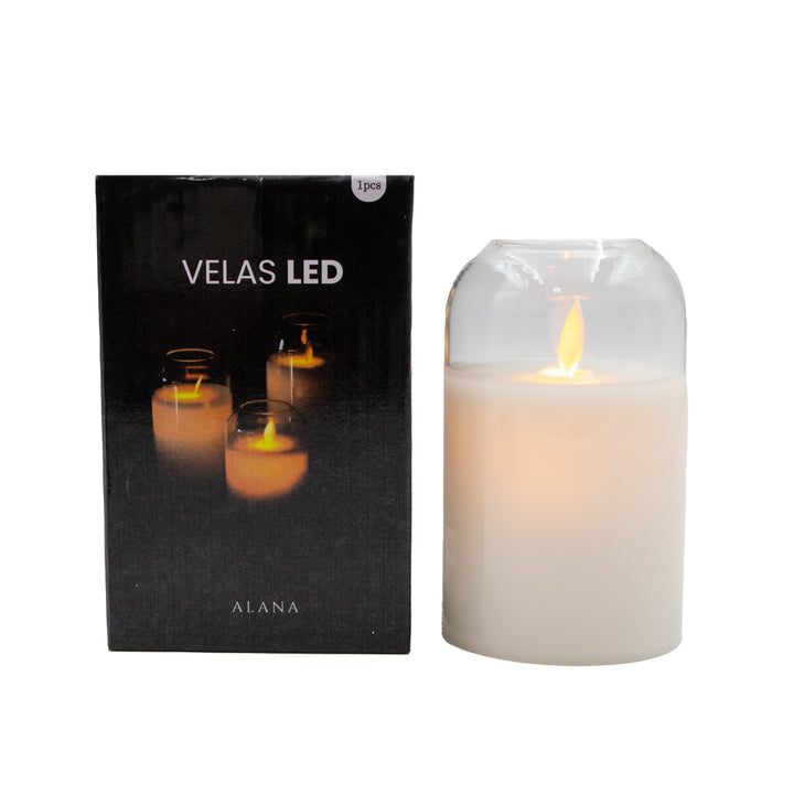Velas LED en vidrio con recubrimiento de parafina, luz cálida y efecto realista para dar un ambiente acogedor y elegante.