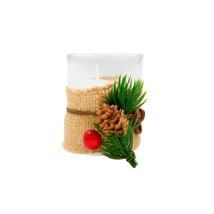 Velas navideñas en vidrio con luz cálida y diseño festivo, ideales para ambientar tus espacios con un brillo elegante y acogedor.